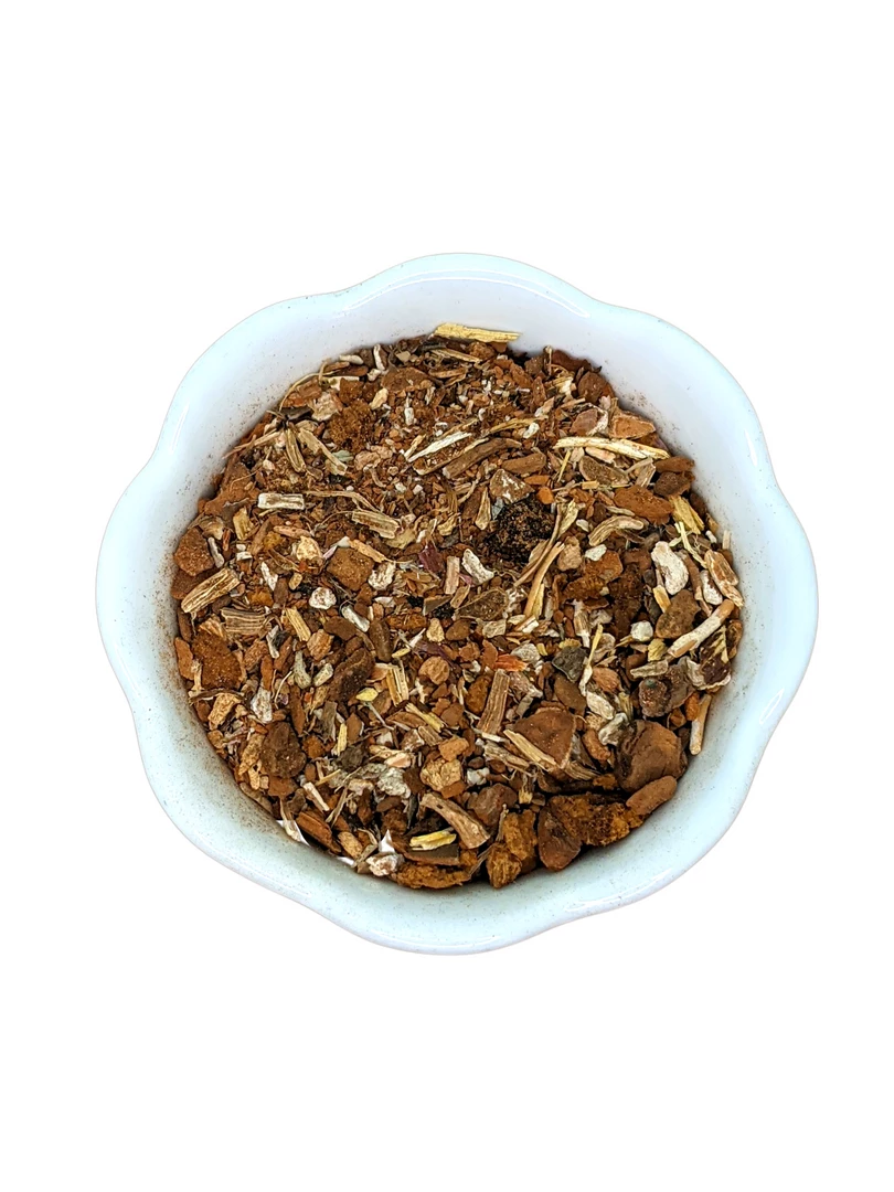 Chaga, Birch bark, Dandelion root, Burdock root, Licorice, Ginger, Vanilla bean, Sassafras, Sarsaparilla